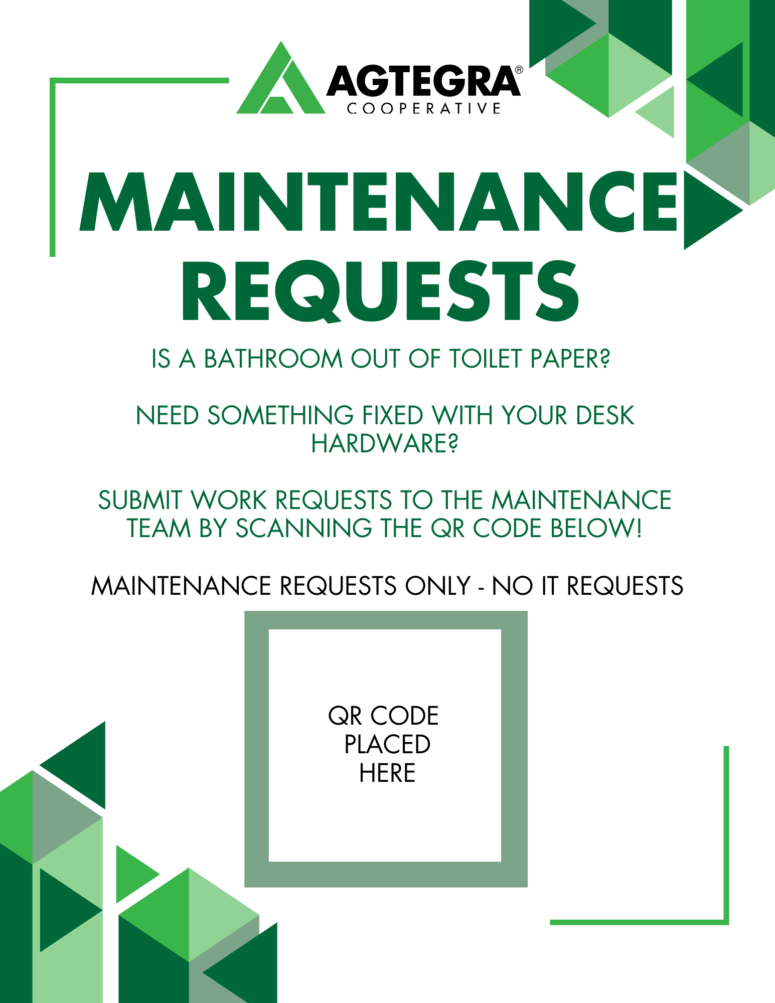 Another project I worked on was designing a flyer for maintenance requests. These flyers are now displayed throughout the administrative office to make it easier for employees to report maintenance issues. This simple addition has helped improve the flow of operations and ensure that workplace maintenance needs are addressed more efficiently.