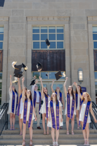 Bring options — we’ll narrow it down on-site. Think about what makes you feel most like you: dressed up, casual, a sport uniform, or your graduation gown. Mix and match is encouraged.